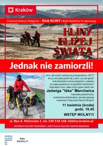 W ramach Rybnickiego Festiwalu "Karawana" w DK Chwałowice, Iśka z etapu 8. opowie o tym, co i jak szybko zamarza przy temperaturze -40 stopni Celsjusza, czy zimą lepiej jeździ się z górki, czy pod górkę oraz ile kilometrów można przejechać z sakwami na single-speedzie po mongolskich bezdrożach.